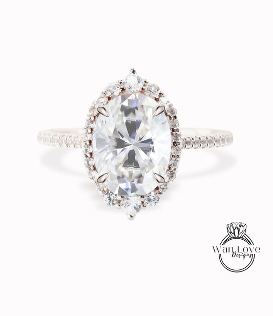 Moissanite & Diamond Vintage 2ct engagement ring|Unique Oval halo wedding ring|Cluster Oval shaped halo Bridal ring|Antique Anniversary Gift