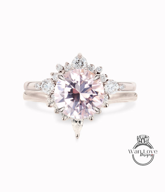 Light Pink Sapphire engagement ring set white gold Unique Round Cluster engagement ring women vintage Pear shape wedding Anniversary gift