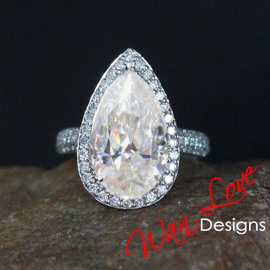 Moissanite & Diamond Pear Halo Engagement Ring, 6.5ct, 16x9mm, 14k 18k White Yellow Rose Gold-Platinum-Custom made-Wedding-Anniversary,Gift