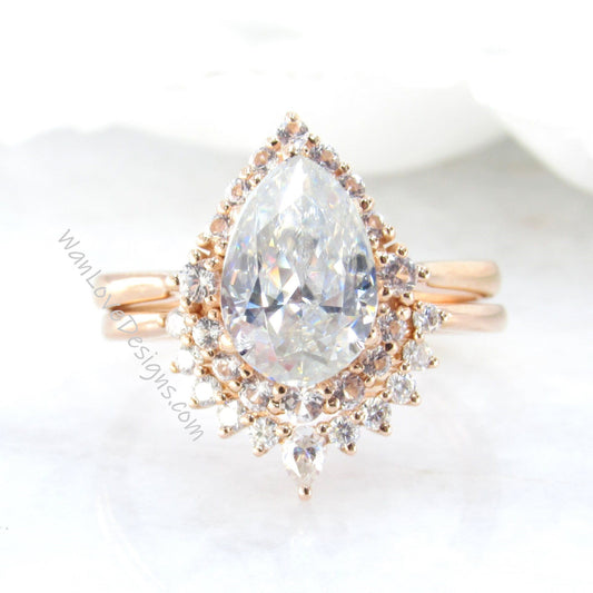 Moissanite Pear engagement ring set Graduated Cluster halo rose gold engagement ring women curved tiara Diamond wedding Bridal Band Gift