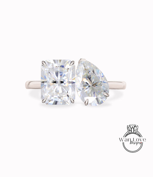 Emerald and Pear Shape Toi et Moi 2 Gemstone Moissanite Ring | 14k 18k Gold | Unique 2 stone ring | Celebrity style ring | Pear Emerald cut