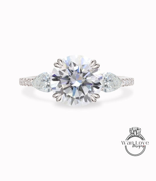3.00ct Ready to Ship White Gold Diamond Minimalist Dainty Pear Round Cluster 3 Stone Engagement Ring,Promise Ring,WanLoveDesigns