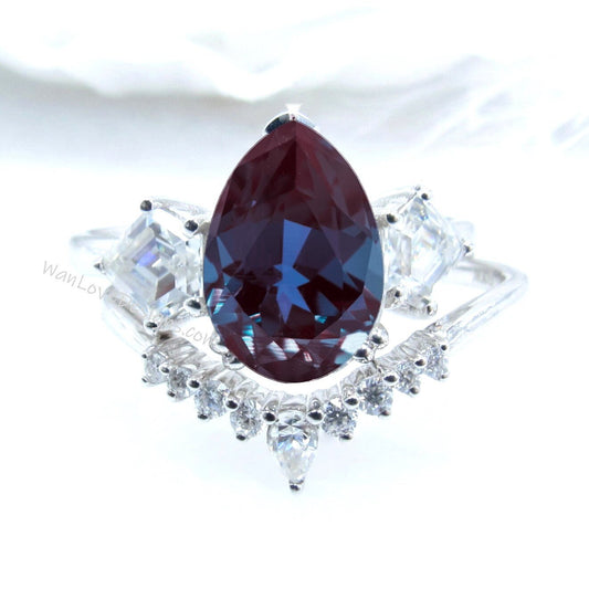 Alexandrite cluster pear kite engagement ring, cluster ring, moissanite ring, moissanite kite ring, unique engagement ring, Anniversary Gift