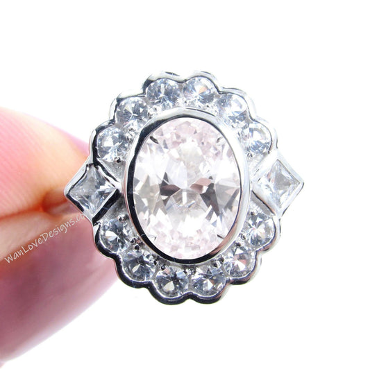 Light Pink Sapphire & Moissanite Oval Semi Bezel Cluster Princess Round Halo Engagement Ring Custom Wedding Jewelry