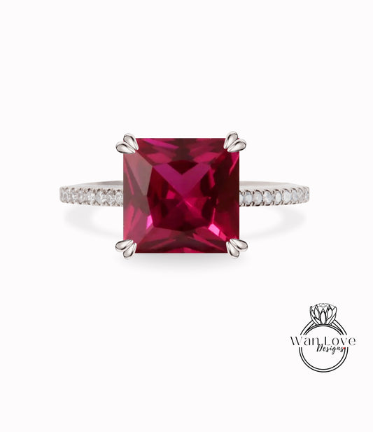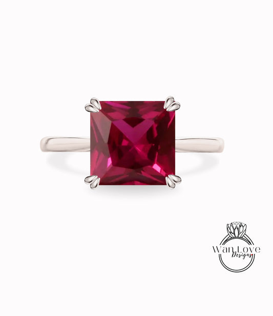 Ruby Solitaire Square Princess Engagement Ring 14k 18k White Yellow Rose Gold-Platinum-Custom-Wedding-4 Double prong,WanLoveDesigns