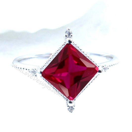Ruby & Diamond Engagement Ring, Milgrain, Kite, NSEW, Princess, Custom,14k 18k White Yellow Rose Gold-Platinum, Wedding, WanLoveDesigns