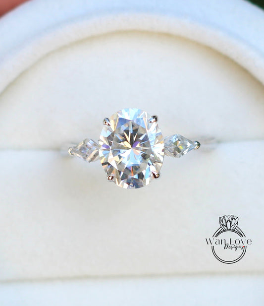 Moissanite Oval & Kite 3 gem stone gold engagement ring Unique Cluster engagement ring women Moissanite Diamond wedding Bridal gift-Ready to Ship