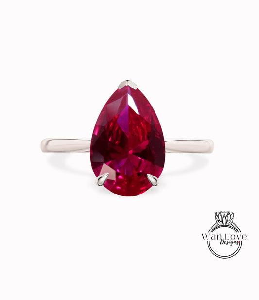 Ruby Solitaire Pear 6 Prong Cathedral Engagement Ring, 14k-18k-White Yellow Rose Gold-Platinum-Custom-Wedding-Anniversary, WanLoveDesigns
