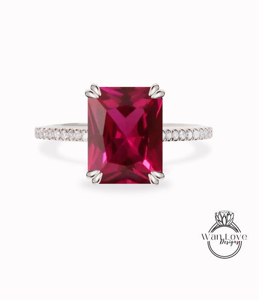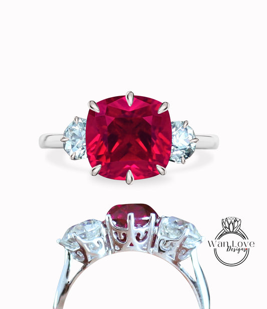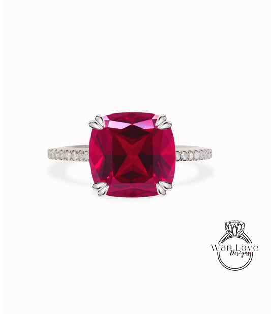 Ruby Diamonds Cushion Solitaire Engagement Ring/Custom/Wedding/Aniversary Gift/14k 18k White Rose Yellow Gold