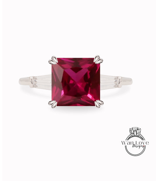 Ruby Princess Radiant Moissanite Tapered Baguette Engagement Ring 14kt 18kt Gold Platinum Custom Wedding Anniversary Gift