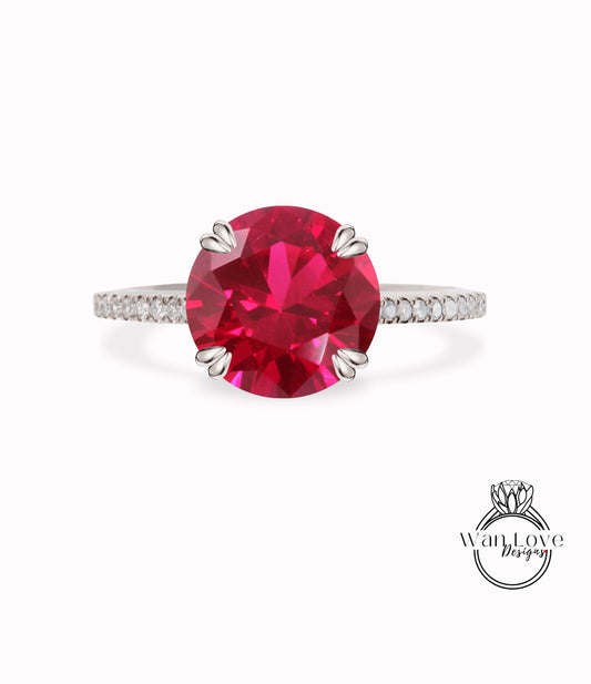 Ruby & Diamond Round Engagement Ring Double prong Solitaire, 14k 18k White Rose Yellow Gold Platinum Custom made Wedding Anniversary Gift
