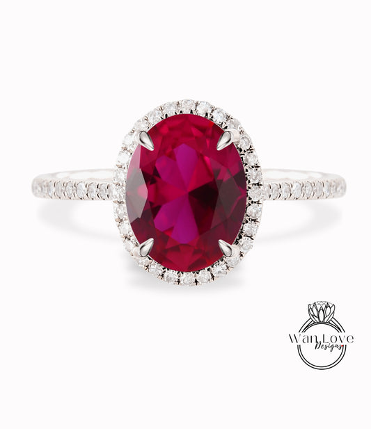 Oval cut Ruby engagement ring art deco ring halo moissanite/diamond ring vintage rose gold half eternity unique anniversary bridal ring