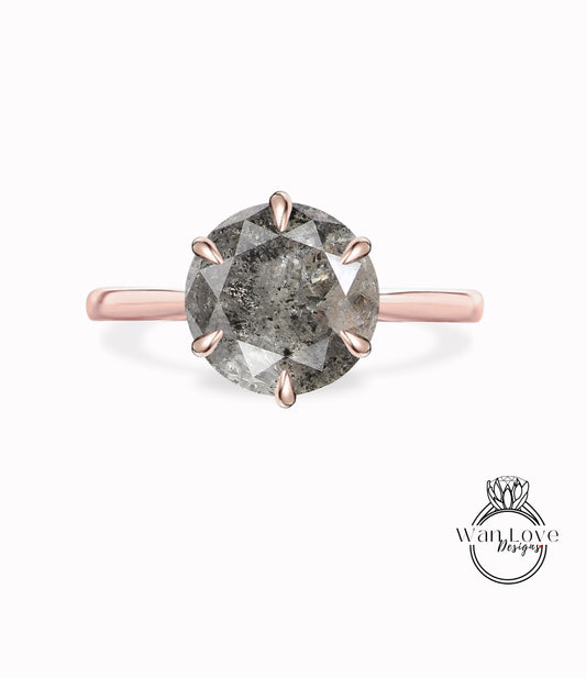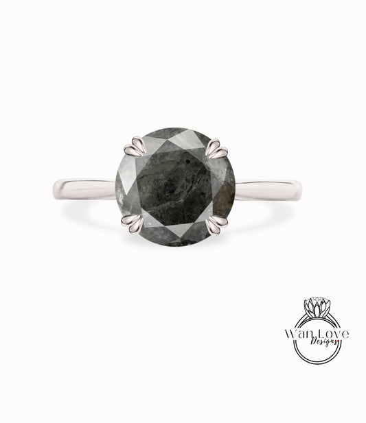 Salt & Pepper Galaxy Diamond 4 prong Round Engagement Ring Cathedral Custom Wedding Anniversary