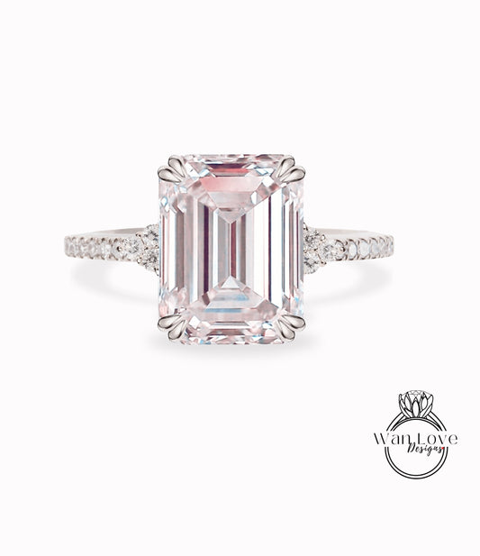 Moissanite & Diamond Asscher engagement ring vintage Rose gold 3 stone Cluster engagement ring women trillion art deco wedding Bridal Anniversary gift