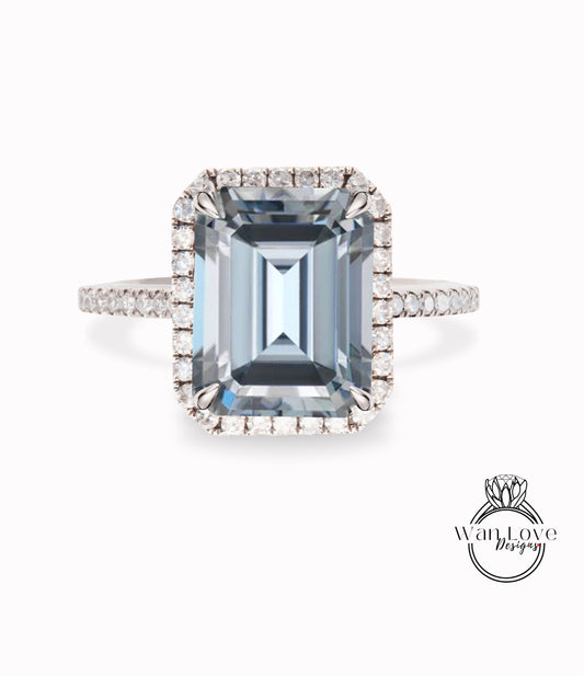 Diamond Halo Ring Grey Moissanite & Diamond Radiant Engagement Ring Art Deco Emerald Gray Halo Ring wedding anniversary bridal promise ring