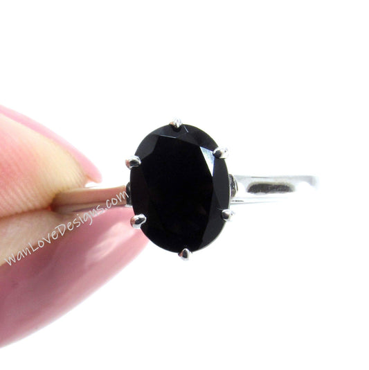 Anello solitario da 3 ct a 6 punte, anello di fidanzamento ovale, anello a traliccio di spinello nero, anello nuziale impilabile, anello anniversario, pronto per la spedizione