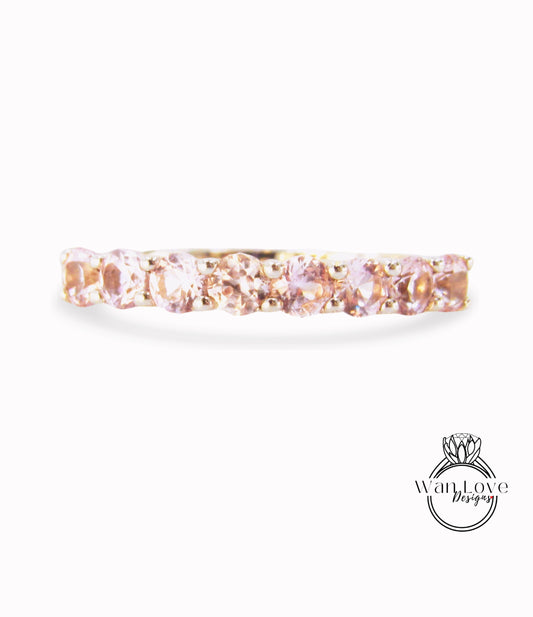 Fede nuziale impilabile per metà eternità Morganite da 3 mm, fascia di fidanzamento rosa, anello in oro rosa 14k 18k, anello nuziale personalizzato-regalo di anniversario