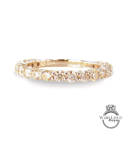 Fascia con diamanti in moissanite a taglio rotondo da 3,00 mm per donne / Fede nuziale in moissanite quasi eterna / Anello da sposa / Fascia in oro massiccio con Moissanite