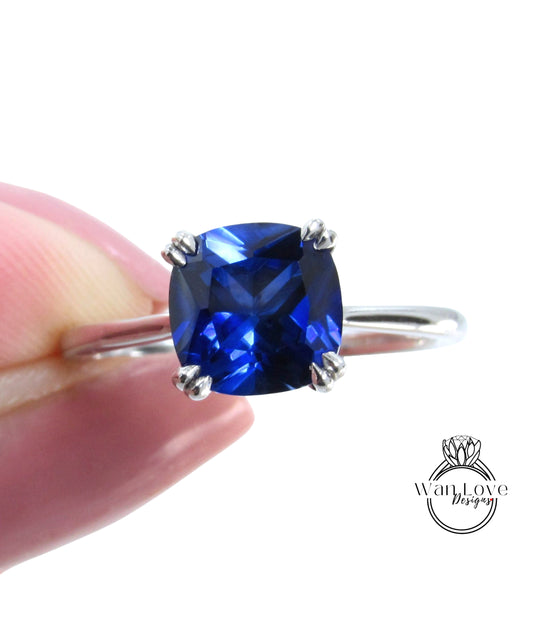 Anello solitario con zaffiro blu taglio cuscino da 3 ct, anello solitario con 4 punte, anello solitario in stile art deco, anello nuziale, promessa di anniversario, pronto