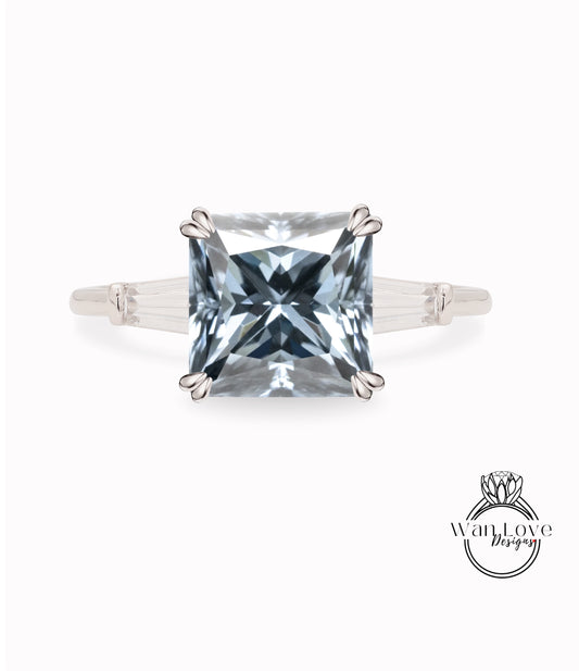 3 stone Grey Mosisanite Princess Bridal Ring Tapered Baguette Cut Diamond Engagement Ring Wedding Promise Ring For Her Anniversary Ring