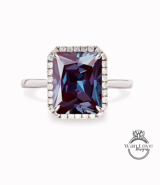 Anello di fidanzamento Halo con smeraldo e diamanti Alessandrite, personalizzato, oro rosa giallo bianco 14k, platino, matrimonio, regalo di anniversario