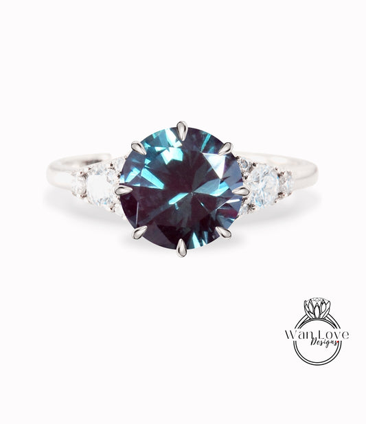 Anello di fidanzamento rotondo con alessandrite anello di fidanzamento Art Déco a grappolo vintage in oro rosa da donna con 8 punte per matrimonio Moissanite, anniversario nuziale