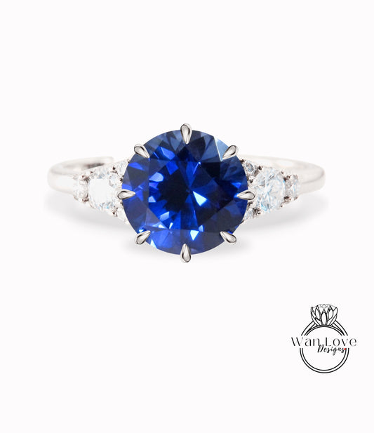 Anello di fidanzamento rotondo con zaffiro blu vintage in oro rosa Art Deco Cluster anello di fidanzamento da donna 8 poli Moissanite matrimonio anniversario nuziale