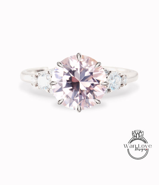 Anello di fidanzamento rotondo con zaffiro rosa chiaro vintage in oro rosa Art Deco Cluster anello di fidanzamento da donna 8 poli Moissanite anniversario di matrimonio