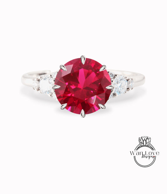 Anello di fidanzamento decorato in stile Art Deco con rubini e diamanti, delicato smeraldo, regalo per l'anniversario di matrimonio in oro 18kt e platino 14kt, WanLoveDesigns