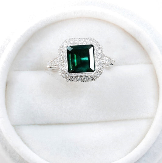 Anello di fidanzamento con smeraldo, oro, vintage, con castone Art Déco, anello di fidanzamento Halo, da donna, con diamanti antichi, regalo per l'anniversario nuziale di Milgrain