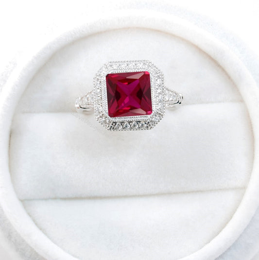 Anello di fidanzamento rubino 14k oro vintage Art Deco Lunetta Anello di fidanzamento Halo donne Diamante antico Matrimonio Milgrain Regalo di anniversario nuziale