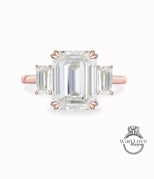 Diamond Emerald cut Baguette Bezel 5 Gemstone Art Deco Certified Diamond Engagement Ring Custom Wedding Anniversary Gift