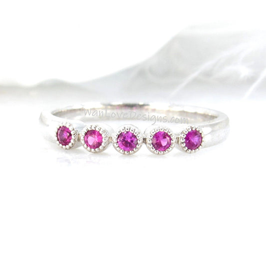 Fede nuziale in rubino Art Deco, Anello coordinato, Gioielli fatti a mano, Anello con castone Milgrain antico, Anello unico, Anello da donna, Regalo per lei, Pronto