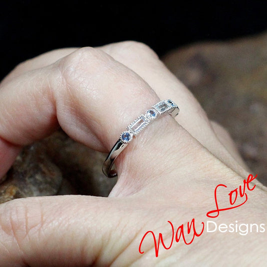 Anello con spinello blu acquamarina con castone baguette CON o SENZA Milgrain • Anello con castone con diamanti vintage • Anello anniversario • Regalo per feste con pietra portafortuna