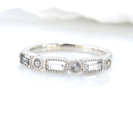 Anello Moissanite con castone baguette CON o SENZA Milgrain • Anello con castone vintage con diamanti • Anello di fidanzamento • Anello anniversario • Regalo con pietra portafortuna