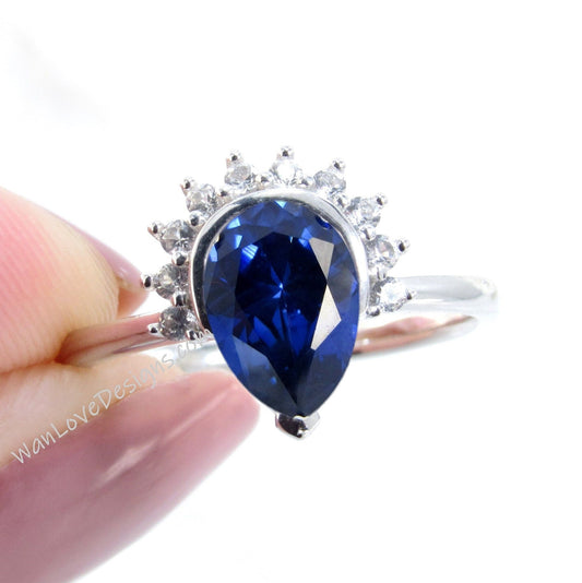 Anello con taglio a pera in zaffiro blu, Anello semi-castone, Anello di diamanti Half Halo, Anello di fidanzamento con zaffiro, Anello Halo a pera, Pietra portafortuna di settembre