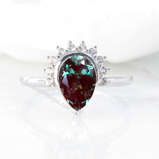 Anello di Alexandrite con taglio a pera, Anello semi castone, Anello di diamanti Half Halo, Anello di fidanzamento di Alexandrite, Anello di Alexandrite Halo, Pietra portafortuna di giugno