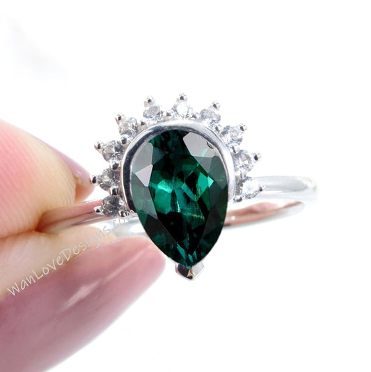 Anello smeraldo taglio pera, anello semi castone, anello di diamanti Half Halo, anello di fidanzamento smeraldo, anello Halo smeraldo, pietra portafortuna di maggio