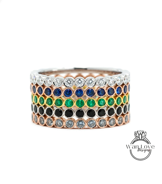 Anello con castone verde smeraldo e diamanti, fede nuziale in zaffiro bianco quasi eterno, anello moissanite a doppia fila, fascia in pietra portafortuna