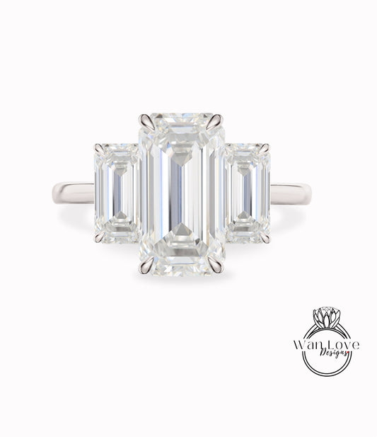 Anello di fidanzamento Moissanite con taglio smeraldo art deco, taglio rotondo e baguette, con 3 pietre preziose, anello in oro rosa con grappolo, anello nuziale, promessa di anniversario.