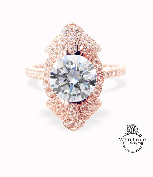Round shaped Moissanite engagement ring vintage Unique white gold engagement ring woman Art Deco diamond Bezel Cluster ring Promise ring