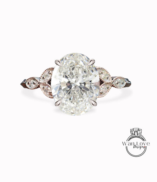 Anello di fidanzamento a foglia con grappolo di diamanti ovale, anello a grappolo di pietra rotondo ovale, anello di fidanzamento con diamanti, anello di fidanzamento unico, anello d'oro 14k