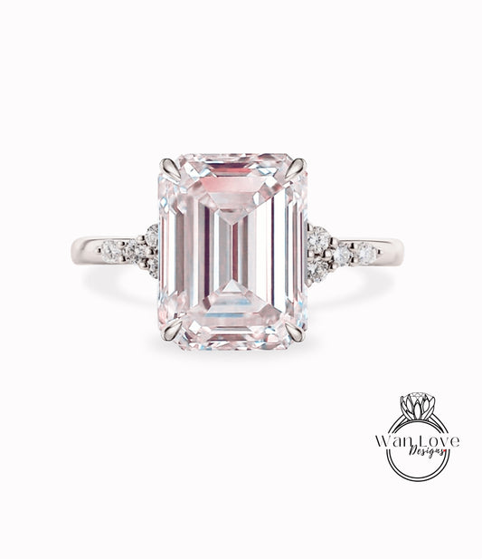 Anello di fidanzamento con zaffiro rosa chiaro con taglio smeraldo, diamante Moissanite vintage, anello di fidanzamento in oro rosa con cluster unico, regalo di promessa nuziale