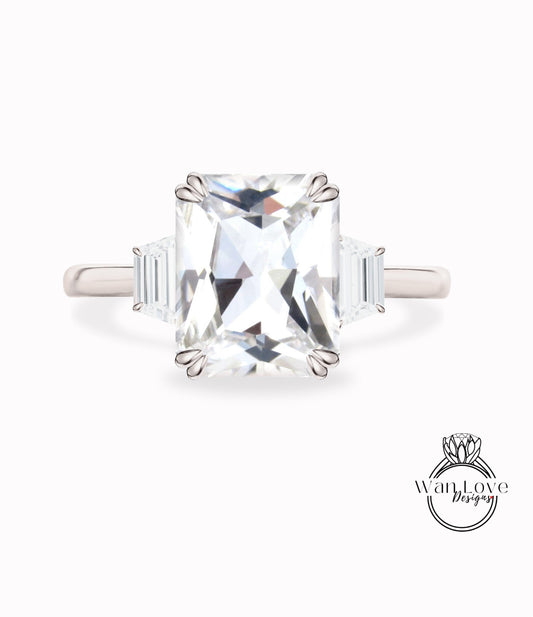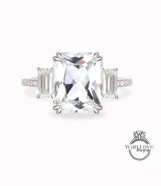 Zaffiro bianco diamante smeraldo Baguette 3 anello di fidanzamento con pietre preziose 4ct 10x8mm 14k bianco giallo oro rosa platino anniversario di matrimonio personalizzato