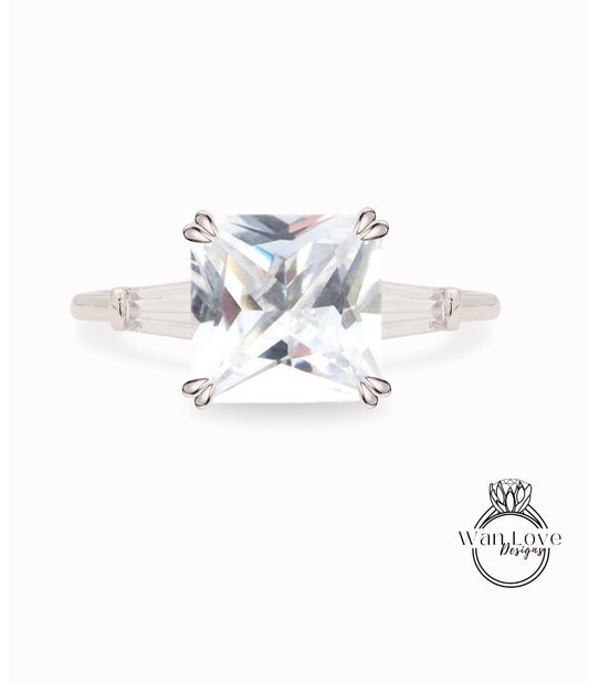 Anello di fidanzamento con zaffiro bianco principessa radiante baguette affusolato Anello con moissanite 14kt 18kt oro platino regalo di anniversario di matrimonio personalizzato