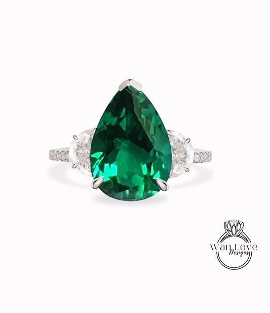 Anello di fidanzamento con diamanti smeraldo e moissanite Cuscino ovale mezza luna 3 pietre preziose 14k 18k bianco giallo oro rosa, platino, personalizzato