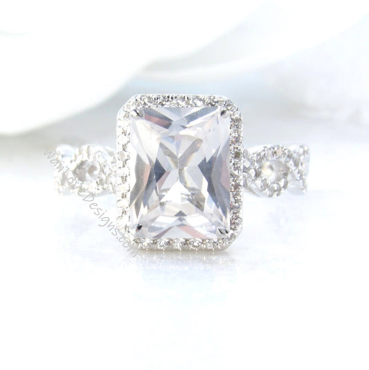 Zaffiro bianco diamante Halo East West smeraldo anello di fidanzamento radiante, 14k 18k bianco giallo oro rosa-platino-matrimonio personalizzato