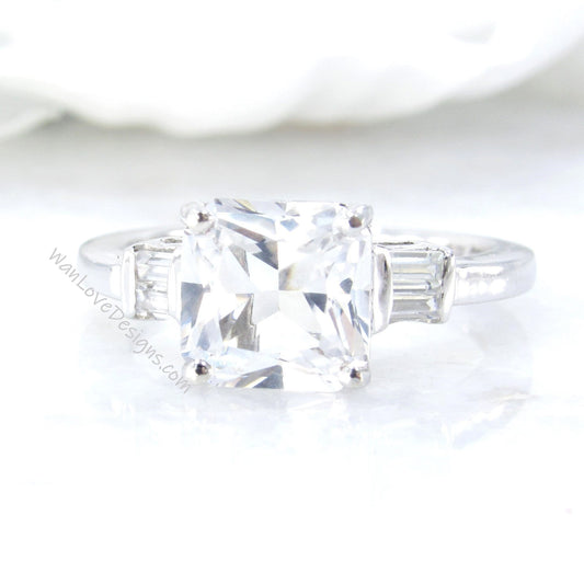 Anello di fidanzamento principessa radiante con zaffiro bianco e baguette, regalo personalizzato per anniversario di matrimonio con 5 pietre preziose, WanLoveDesigns