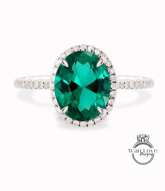 Anello di fidanzamento con smeraldo ovale Anello in oro rosa antico con diamanti Halo Anello Art Deco Delicato anello nuziale Anello di promessa di anniversario