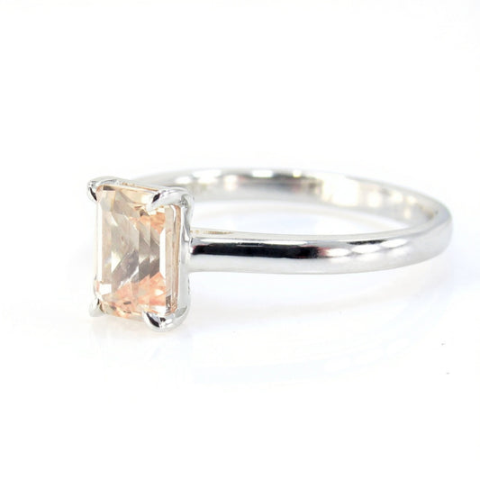 Pesca Champagne Zaffiro Smeraldo taglio Solitario Anello di fidanzamento 1ct 7x5mm Oro bianco Anello di promessa di matrimonio Regalo di anniversario, Pronto per la spedizione